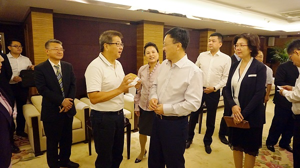 會前,頤高集團副總裁孫力與西安市副市長聶仲秋親切交談。大會期間,孫力作為企業家代表發言,并與未央區簽訂互聯網+雙創平臺戰略合作協議