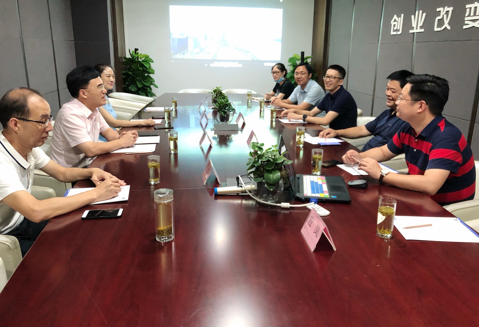 8月29日,河南省駐馬店市驛城區委書記畢啟民一行來訪頤高總部,頤高集團董事長翁南道、頤高集團副總裁顧鵬兼頤高新經濟CEO顧鵬接待并座談。