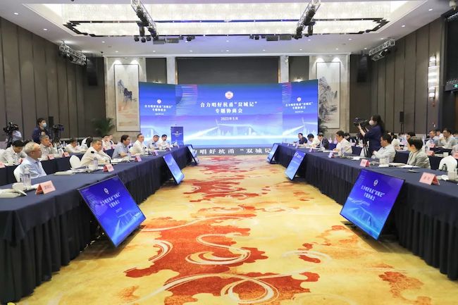 5月25-26日,合力唱好杭甬“雙城記”專題協商會在寧波舉行。寧波市政協主席徐宇寧、杭州市政協主席馬衛光出席,杭州市副市長孫旭東,寧波市副市長李關定到會聽取意見。杭州市政協副主席許明、毛溪浩、陳新華和秘書長柴世民,寧波市政協副主席陳仲朝、陳為能、王麗萍、劉毅和秘書長徐紅參加,杭州市寧波商會會長、頤高集團董事長翁南道出席本次會議。