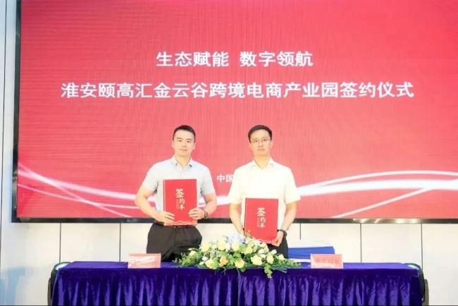 7月20日下午,“生態賦能 數字領航”—— 淮安頤高匯金云谷跨境電商產業園簽約儀式暨淮安跨境電商生態發展論壇在匯金云谷商務中心舉行。活動期間,淮安開發控股有限公司黨委書記、董事長徐鐵與頤高集團副總裁、產城科技總裁、浙江浙商電子商務研究院總經理黃濤上臺進行“淮安頤高匯金云谷跨境電商產業園項目“簽約,并舉行了正式的運營啟動儀式。此次活動標志著淮安頤高匯金云谷跨境電商產業園正式落地,為推動淮安市數字經濟高質量發展開好局、起好頭。