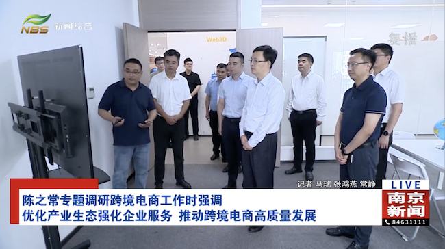 9月1日,市長陳之常專題調研跨境電商工作。他強調,要深入學習貫徹習近平總書記考察江蘇重要講話精神,著力塑造開放型經濟新優勢,搶抓跨境電商發展新賽道,優化產業生態,強化企業服務,加快培育規模化、專業化跨境電商企業,推動跨境電商高質量發展。市委常委、江北新區黨工委書記楊學鵬參加。