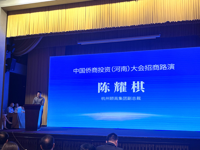 為了做好中國僑商投資(河南)大會客商邀請工作,迎接中國僑商投資(河南)大會。10月17日,中國僑商投資(河南)大會招商路演活動在浙江省杭州市舉行。頤高新經濟副總裁陳耀棋受邀參會并作為知名僑商代表發言。