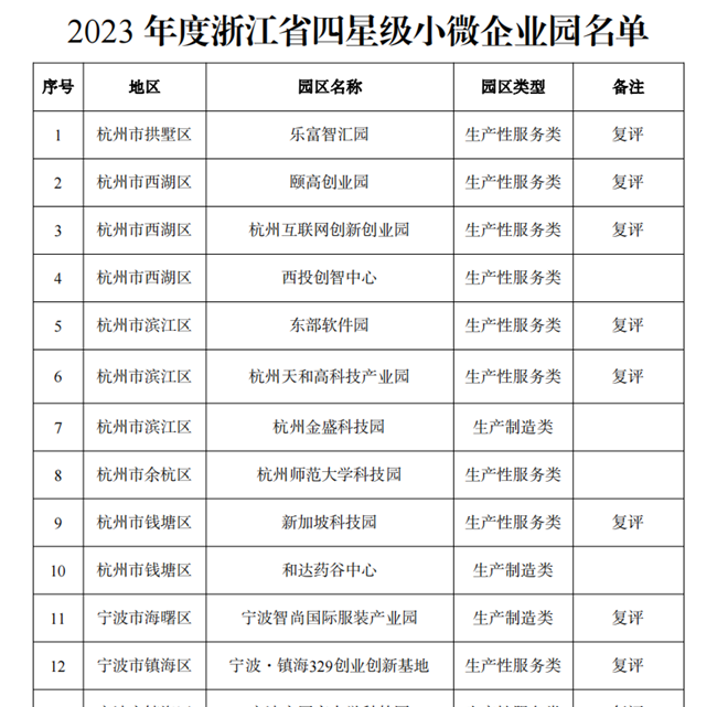 經園區自主申報、各市審核推薦、專家實地核驗、有關部門聯審和網上公示等程序,確定2023年省五星級小微企業園23個、四星級小微企業園32個,其中嘉興頤高創業園成功上榜!