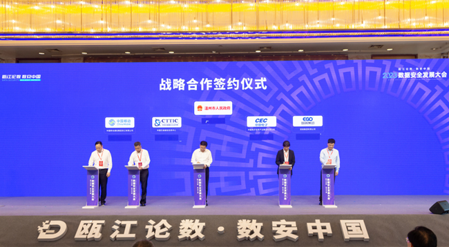 5月17日至18日,“甌江論數 數安中國”2023數據安全發展大會在浙江溫州召開。此次大會戰略合作簽約環節中,溫州市常務副市長楊勝杰作為溫州市政府代表與頤高集團董事長翁南道簽訂雙方戰略合作協議。目前,已簽約落地溫州(杭州濱江)科創飛地、溫州數安港項目等項目。此次簽約標志著頤高集團與溫州市政府的合作開啟了新的篇章,也意味著頤高的“大溫州”戰略邁出了堅實的一步。