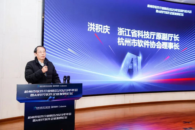 浙江省科技廳原副廳長、杭州市軟件協會理事長洪積慶致辭