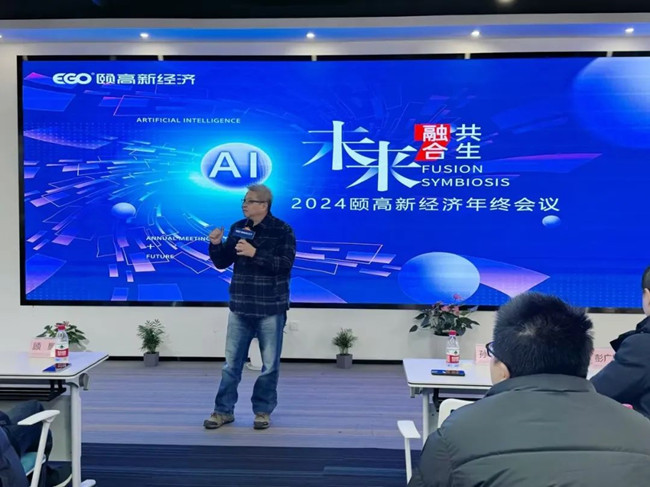 頤高集團副總裁,新經濟總裁顧鵬做開場演講。圍繞2023年新經濟公司聚力頭部+商協會+生態企業,產業+投資+數字化不斷突破。放眼2024,AI+3的發展賽道,城市更新,盤活存量資產;做好青島、鄭州這樣的資源平臺,打單運營一體化,用更強大的力量擁抱2024.