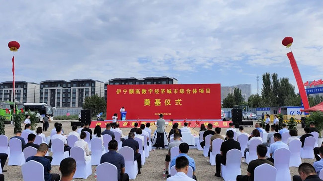 當天上午,考察團一行受邀參加了伊寧頤高數字經濟城市綜合體項目的奠基儀式。伊寧市委常委、常務副市長夏治國作開場致辭,頤高集團董事長翁南道代表企業家發言,伊寧市委副書記、市長哈米提·阿克木啟動奠基儀式,揚土培基,撬動發展新篇章。