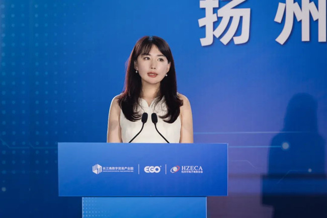 張又雯在致辭中表示,杭州市電子商務協會一直致力于推動電子商務行業的發展與創新。此次揚州?長三角數字貿易產業園的開園,是揚州在跨境電商領域邁出的重要一步,也為兩地的電商合作提供了新的契機。協會將充分發揮自身的資源和經驗優勢,與揚州的合作伙伴共同努力,為長三角數字貿易產業園的發展提供多方面的支持,促進兩地電商企業的交流與合作,分享行業最新動態和成功經驗;協助引進先進的電商技術和管理模式,提升園區的運營水平和競爭力;積極推動人才培養與交流,為產業園的持續發展提供人才保障。