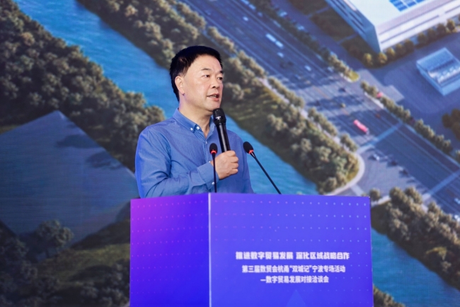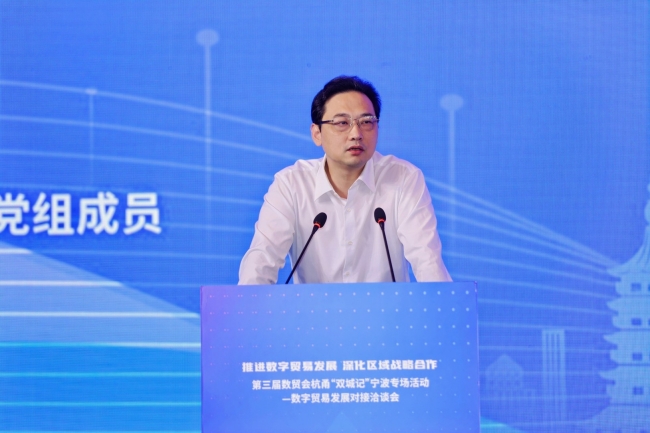 寧波市商務局副局長、黨組成員蔡驪軍在致辭中表示,唱好杭州、寧波“雙城記”是貫徹落實習近平總書記重要指示精神的具體舉措,是省委省政府重要決策部署,也是杭州、寧波兩地立足實際,深化合作,協同發展,深入實施長三角一體化發展戰略的現實需要。他強調,第三屆數貿會是我省在杭州舉辦的國家級重點數字貿易專業展會,必須借助這個國際經貿交流窗口平臺,開展相互學習交流,尋求洽談合作機會。他希望企業能在數字貿易這個全新的領域中大膽嘗試、不斷創新,為數字貿易發展探索出企業樣板、業務范例,為我市、全省,乃至全國提供樣本借鑒和學習參考。