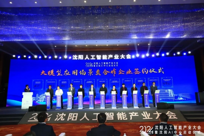 在與會領導和嘉賓的共同見證下,沈陽AI中心宣布正式啟動。該AI中心是沈陽人工智能產業園的核心區,具有自主可控、軟硬一體的人工智能全棧基礎設施,可為入駐企業提供端到端的人工智能技術支撐、數據服務、算法服務和模型服務。沈陽AI中心賦能沈陽特色重點產業的數字化轉型和智能化升級,首創一個高性能AI基礎設施底座、一個超億產值數據標注基地、一套AI大模型和數據要素流通平臺、一個產業應用場景展示中心的“四個一”模式,依托百度智能云行業領先的AI和云服務能力,全面推進沈陽數字經濟蓬勃發展,探索數字產業基地新模式,打造全國數字產業標桿。