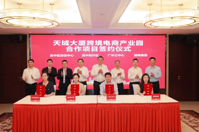 6月4日,由中國服務貿易協會牽頭,頤高集團攜手廣州三中心共建的天域大廈跨境電商產業園項目正式簽約落戶蘇州吳中區。中國服務貿易協會副會長兼秘書長仲澤宇,中國服務貿易協會常務副秘書長、全球跨境電商“三中心”負責人田國鋒,頤高集團董事長翁南道,億脈通科技CEO肖慶,廣州三中心公司CEO程嘯天;市委常委、副市長唐曉東,市政協副主席、區委書記丁立新,市商務局局長沈晶,區委副書記、區長萬利等領導出席見證簽約。
