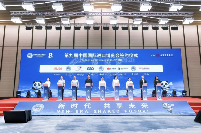 活動現場還舉行了第九屆進博會招展啟動儀式,40余家企業簽訂了第九屆進博會參展協議,頤高產城科技副總裁胡榮作為代表上臺與進博局簽約,此次簽約不僅標志著香港頤高持續深度參與這一國家級盛會的承諾,更彰顯其積極推動區域數字經濟轉型、賦能國際科創合作的堅定信心。