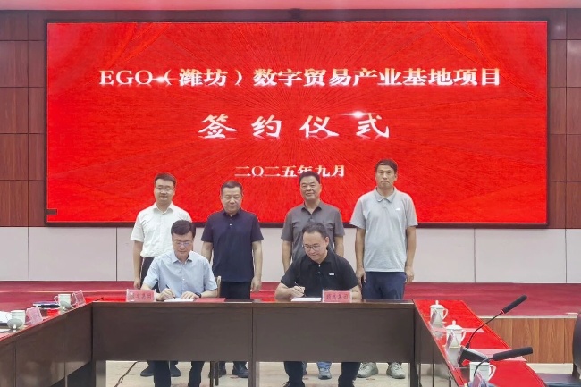 9月9日,考察組一行繼續赴濰坊市奎文區考察調研,進一步拓展區域合作空間。團隊在奎文區委副書記、區長董盛龍陪同下先后走訪了云創金谷、1532文化產業園等多個項目,實地了解區域產業基礎、文化特色與創新資源分布。隨后,翁南道一行與濰坊市副市長、奎文區委書記周俊,區委副書記、區長董盛龍等舉行座談交流,并在與會領導的見證下,頤高新經濟執行總裁盧錫峰與恒建集團董事長朱蘭冉正式簽署EGO(濰坊)數字貿易產業基地項目合作協議,依托雙方優勢,助力奎文區乃至濰坊市增強產業競爭力、培育數字經濟新引擎。