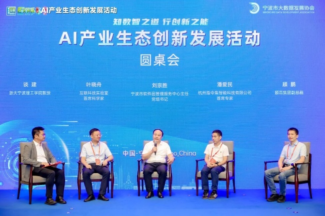 圓桌會談環節由中組部"千人計劃"國家特聘專家、浙大寧波理工學院教授談建主持。寧波市軟件園管理服務中心主任劉宗勝,互聯科技實驗室首席科學家葉曉舟,指令集智能科技首席專家潘愛民,浙江大學CCAI寧波中心負責人董重青,頤高集團副總裁顧鵬等嘉賓,圍繞AI技術落地、產城融合、生態共建等議題展開深度對話,為現場觀眾帶來了一場思想盛宴。
