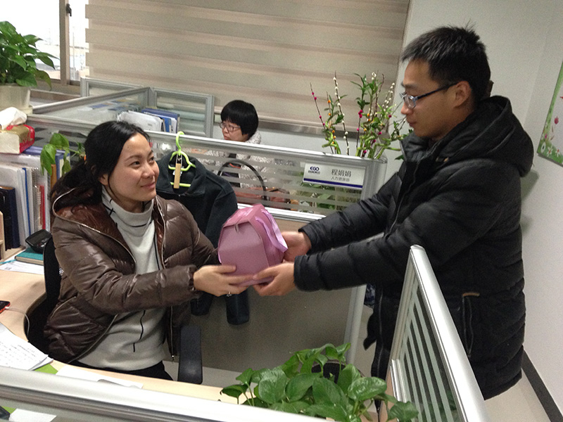 貼心暖男為大伙送上熱騰騰的元宵,暖心的同時還有驚喜,有部分幸運小伙伴吃到了特殊餡料的元宵,拿到了綠色小盆栽。為了不錯過對頤高女神的祝福,暖男們提前為女神過節,親手送上禮物,提前送祝女神節日快樂。元宵節恰逢大雪,但頤高辦公區內洋溢著暖暖的節日氣氛。
