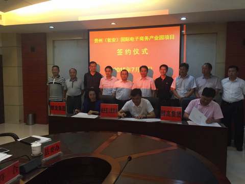 7月29日,貴州(甕安)國際電子商務產業園項目在貴州省甕安縣簽約。貴州省黔南州州委常委、副州長、甕安縣委書記蔣映生,甕安縣縣委副書記、縣長黃桂林等政府領導及頤高集團董事長翁南道,頤高集團副總裁顧鵬等出席了簽約儀式。