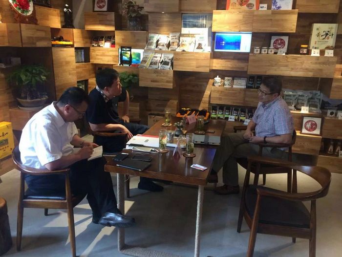 雙方來到頤居草堂進行座談交流。王市長表示,榮成市作為威海市下轄的縣級市,處于膠東半島的最東端,三面環海,海岸線長達500公里,擁有兩個一類開放港口、一個省級開發區、一個省級工業園、兩個省級旅游度假區,全市人口70余萬,是膠東半島地區交通區位優越、產業基礎夯實、旅游資源豐富的經濟強市,全市緊緊圍繞海洋經濟為發展支點,取得了良好的發展局面。目前,市委市政府積極引導產業轉型升級,希望借助電子商務的渠道,將原來單一的海產品出口外向型經濟調整為出口和內銷兩條路同時并行發展的多渠道發展之路。頤高電商擁有先進的發展理念和完善的運營模式,希望在電子商務領域雙方能夠找到合適的共同點,一同合作發展。同時,榮成市生態環境優異,旅游資源豐富,也是頤居養生園項目落地發展的最佳選擇。
