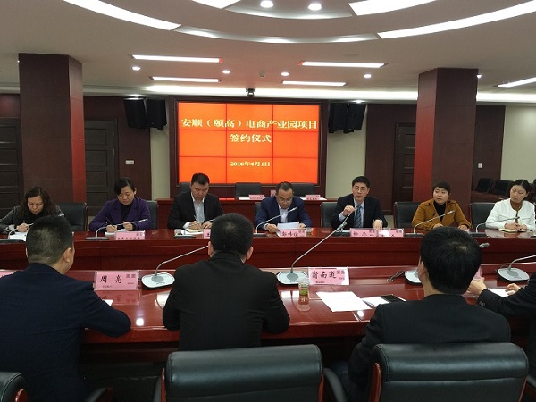4月1日,頤高集團電商園項目——安順(頤高)電子商務產業園在貴州安順市正式簽約落地。在安順市委常委、西秀區委書記郭偉誼,合力地產董事長周湘武,頤高集團董事長翁南道共同見證下,西秀區副區長徐杰、合力地產總經理李林法以及頤高集團副總裁顧鵬正式簽署安順頤高電商園項目投資協議。