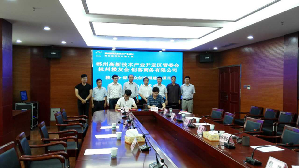 同日,樓友會湖南眾創空間正式簽約落地,聯合創始人徐金波和高新區管委會副主任蔡峰在郴州市副市長李庭見證下正式簽約。