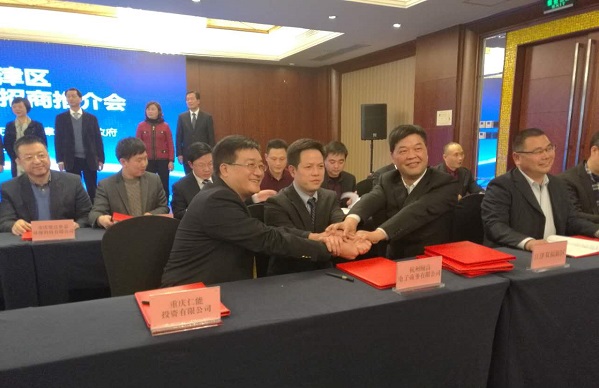 1月13日,重慶江津區“奮進十三五”新聞發布會暨招商推介會在重慶市天來大酒店順利舉行。會上,西部硅谷小鎮項目正式簽約。出席本次會議的嘉賓有:江津區區委書記程志毅、江津區區長譚慶、重慶市委外宣辦副主任馬然希、江津區常委副區長張果、江津區副區長李勇等政府領導以及頤高集團董事長翁南道、重慶仁能投資有限公司董事長蒲杰等協會及企業家代表。