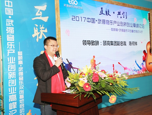 頤高集團副總裁、頤高互聯網總裁陳何樣在致辭中表示武強音樂雙創基地的啟動運營,將立足武強樂器產業優勢,整合頤高集團資源,讓創業在武強真正變成“零門檻”,助力武強縣經濟的升級轉型,打造武強音樂特色產業,能夠有效地激發武強本地及周邊城市的創新潛能和創業活力。