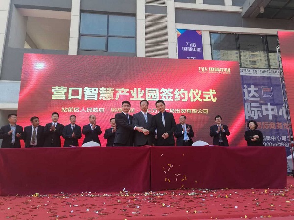 4月21日,營口智慧產業園在遼寧營口正式簽約落地。營口市市長余功斌、副市長董永安、市政府秘書長徐啟、遼寧省商務廳電商處領導、站前區政府區長杜邦安等政府領導及頤高集團董事長翁南道、頤高電商園副總裁翁國明、頤高電商園總裁助理兼東北大區總經理陳上都、營口萬達廣場投資有限公司總經理袁斌等企業代表出席了簽約儀式,同時吸引了站前區40余家企業參與。
