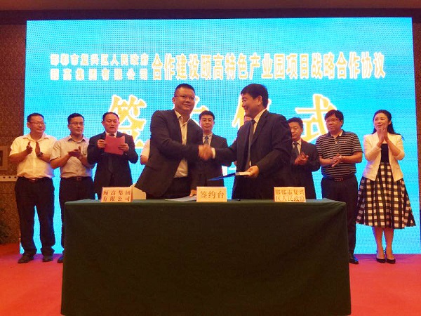 會上,頤高特色產業園項目合作簽約儀式正式舉行,頤高集團副總裁,頤高互聯網科技公司總裁陳何樣作為簽約代表與復興區區長李少鋒簽訂戰略合作協議。