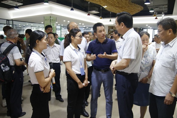 楊東坡一行先后參觀了滁州頤高電商園內頤居草堂、萬創空間、全椒生態客廳、萬創咖啡、智能體驗館、微巢學院等6大模塊,王玲在接待中詳細介紹滁州頤高電商園“互聯網+雙創”的運營模式、重點人才培養模式及整個園區的運營情況。