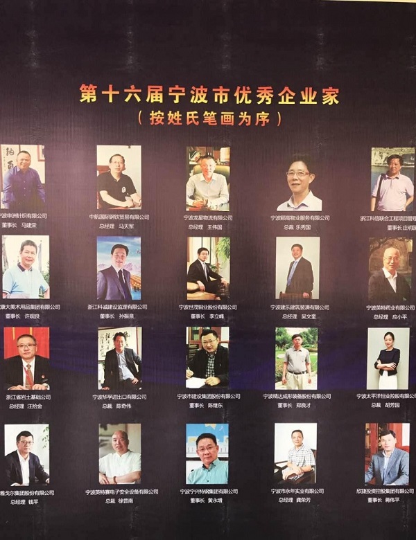 據悉“寧波優秀企業家”需要通過寧波優秀企業家評委會辦公室初選、寧波優秀企業家評委會評審、寧波市企聯會長辦公會議通過并經網上公示,寧波頤高總裁樂秀國、寧波太平洋恒業控股有限公司總裁胡芳園等20位寧波企業家當選。