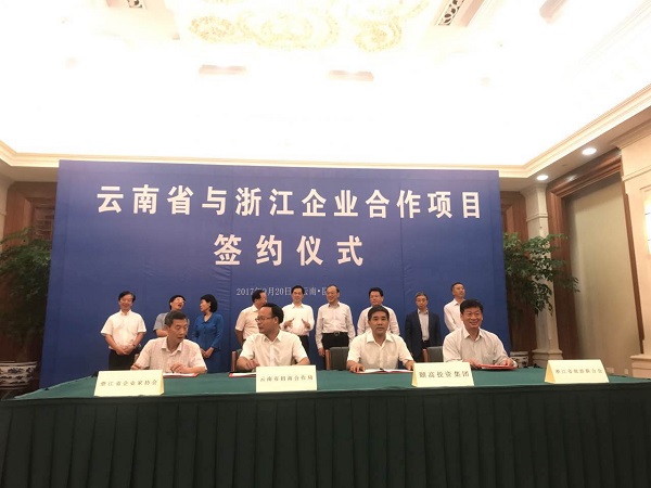 座談會結束后,作為簽約方之一,頤高集團及其他浙商代表一同與云南省招商局簽署戰略合作協議,合作項目涉及貿易、金融、農業、旅游、醫療、大數據、特色小鎮建設等領域。