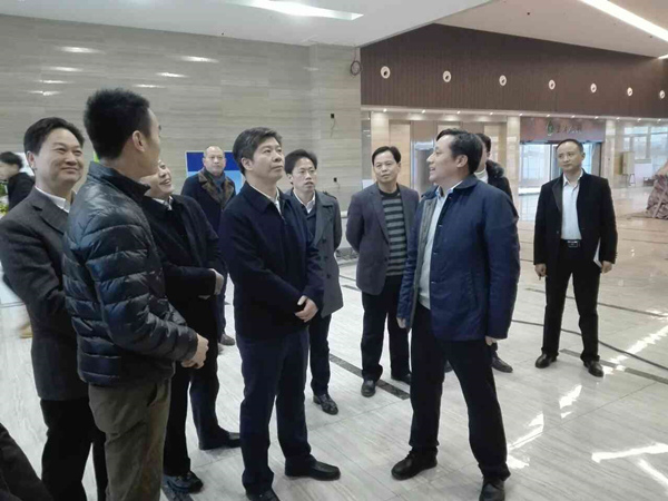 在項目負責人曾慶豐的介紹下,李薦國先后參觀了頤居草堂,智能體驗館,電商服務中心,孵化器,加速器以及微巢學院等板塊,詳細了解了婁底創業小鎮在創業服務、項目孵化以及專業人才引進培養等方面的運營成果,并與入駐企業進行了深入交流。
