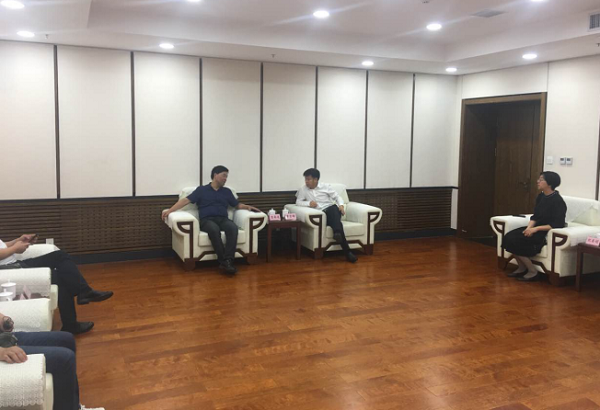 盤錦雙臺子區長李吉峰(右)與頤高集團董事長(左)座談交流