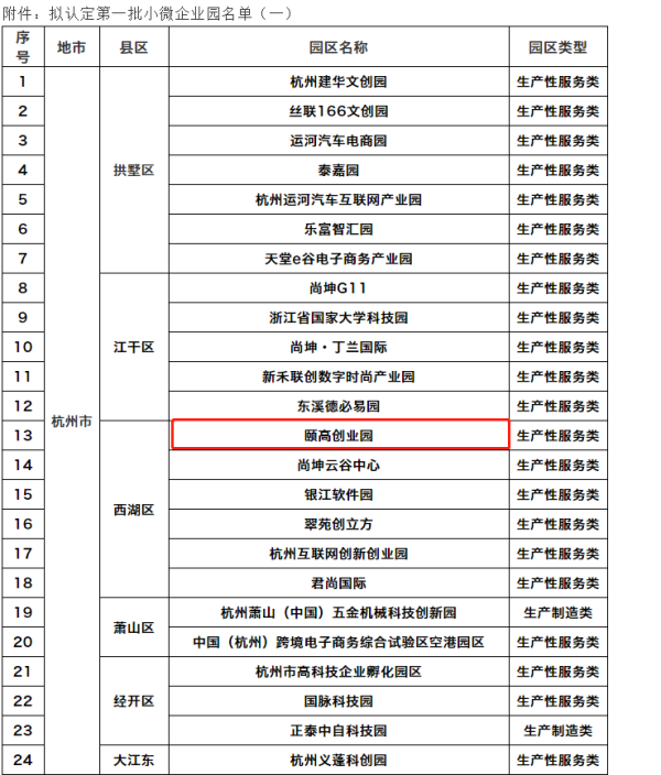 根據《浙江省促進中小企業發展工作領導小組辦公室關于做好小微企業園審核認定和績效評價試點等工作的通知》(浙中小企業辦〔2019〕8號),經園區申報、縣市省三級審核,擬認定第一批小微企業園。其中,頤高創業園、紹興頤高科技創業園、衢州頤高科技創業園,以及頤高旗下樓友會運營的海鹽縣科技創業園均當選。