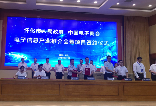 7月7日,懷化市電子信息產業推介會暨項目簽約儀式順利舉行。湖南省政協副主席、懷化市委書記彭國甫,懷化市委副書記、市人民政府市長雷紹業,懷化市人民政府副市長姚述銘,中國電子商會會長王寧,億脈通CEO虞艇,億脈通區域發展總監李冬冬等出席了會議。會上,鶴城夢巢小鎮項目簽約。