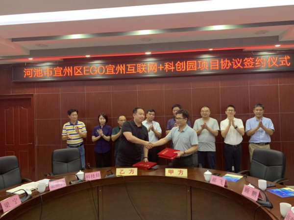 7月30日下午,在河池市宜州區人民政府區長梁寧、副區長梁基武、頤高集團董事長翁南道等領導的見證下,頤高宜州互聯網+科創園項目正式簽約。