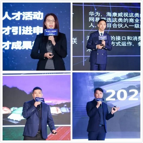 產品公司方面,頤高集團副總裁、樓友會創始人兼CEO李艷萍(左上),頤高集團副總裁、億茂新商業CEO蔡曉君(右上),頤居美麗鄉村CEO葉峰(左下)、億脈通CEO虞艇(右下)分別就打造人才平臺及流量產品、數字平臺賦能園區生態、打造美麗鄉村創新樣板、數字文創產業投資等發展規劃進行了分享。