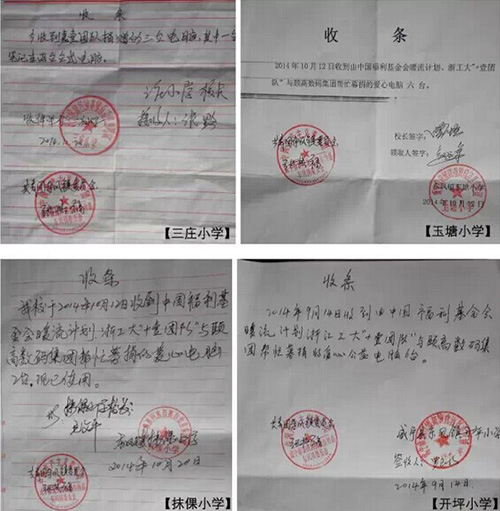 第一批19臺二手電腦分別寄往貴州彝族苗族回族自治縣的四所小學、甘肅省白銀市會寧縣老君鄉謝梗小學供孩子們學習