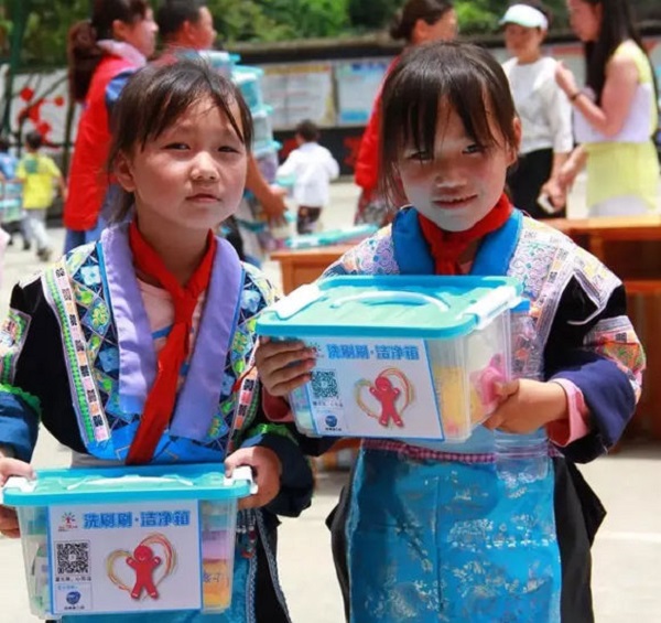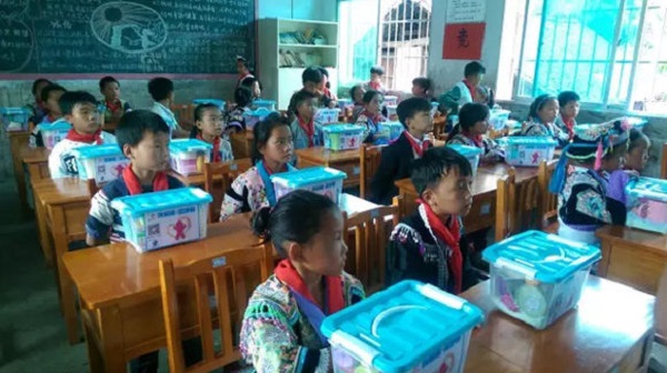 我們給每一個孩子派發了校服以及洗刷刷包(洗漱用品),并且為孩子們講解洗刷刷包的用途。