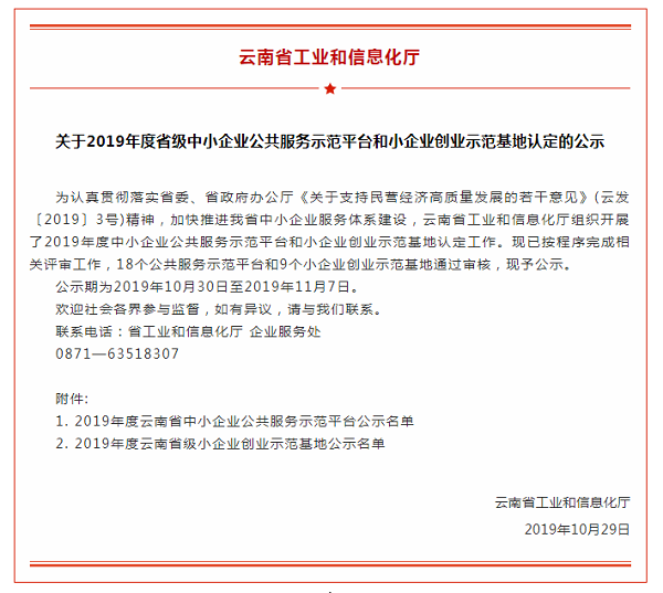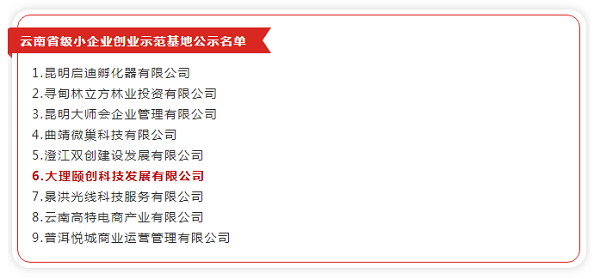 近日,云南省工業和信息化廳發布《云南省工業和信息化廳關于2019年度省級中小企業公共服務示范平臺和小企業創業示范基地認定的公示》,大理海東新區雙創中心榮獲“2019年度云南省級小企業創業示范基地”稱號。