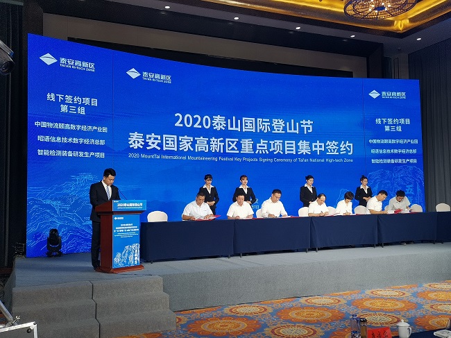 9月7日,2020泰山國際登山節開幕第二日,中國物流頤高數字經濟產業園項目在泰安高新區重點項目集中簽約儀式上簽署合作協議。