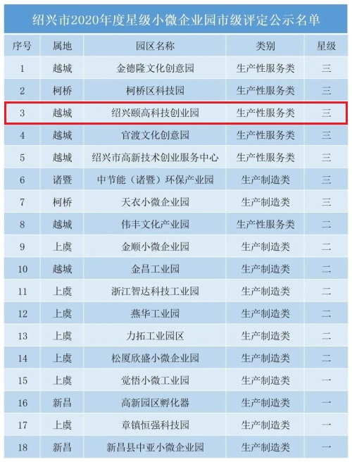 本月,紹興頤高科技創業園獲評“紹興市2020年度星級小微企業園”。