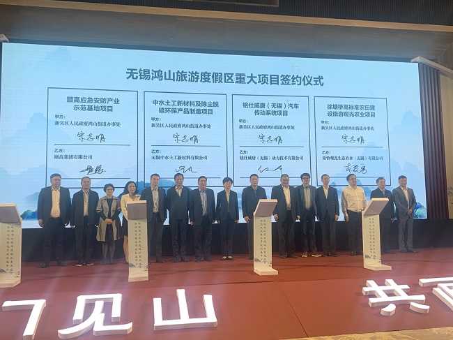 10月21日,無錫鴻山旅游度假區重大項目簽約儀式暨遠景規劃發布會在鴻山中華賞石園一樓報告廳成功舉辦,頤高產城科技有限公司副總裁黃濤受邀參加,并在無錫市副市長、無錫新吳區委書記蔣敏,無錫新吳區委副書記、區長封曉春的見證下與鴻山街道辦事處宋志明主任就物聯網應急安防產業園項目簽訂框架協議。