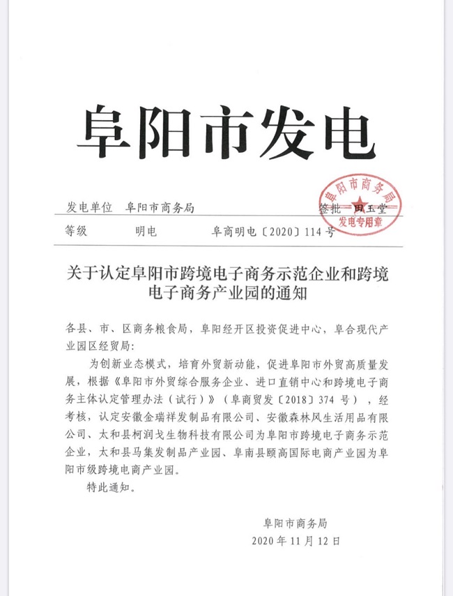 根據《阜陽市外貿綜合服務企業、進口直銷中心和跨境電子商務主體認定管理辦法(試行)》(阜陽貿發〔2018〕374號)要求,在企業自主申報和縣級審核推薦的基礎上,市商務局組織專家對各地推薦的園區進行評審,按照公平公正、規范高效的原則,阜南頤高國際電商產業園獲評為“阜陽市跨境電商產業園”。