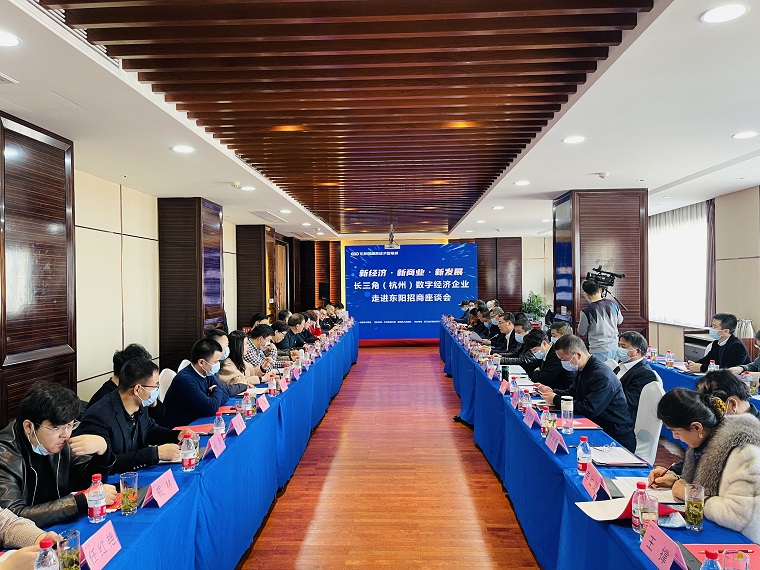 儀式后,頤高集團董事長翁南道帶領各長三角(杭州)數字經濟企業走進東陽并與東陽市人民政府共同舉行招商座談會