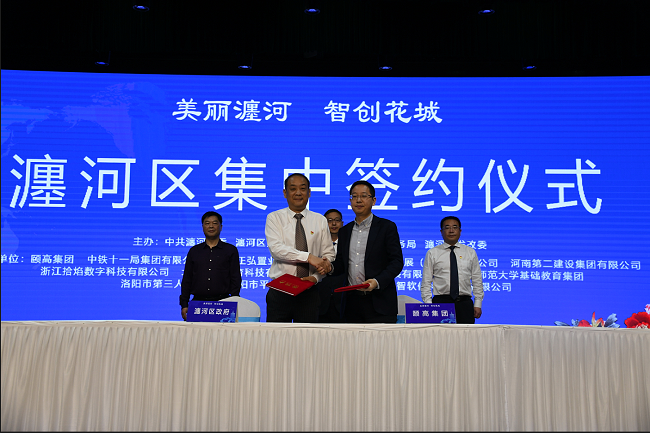 5月1日上午,洛陽市瀍河區重大項目簽約儀式正式舉行。在市商務局局長呂宗樂、瀍河區委書記陳功、頤高集團董事長翁南道的見證下,洛陽頤高數字經濟產業綜合體項目由瀍河區委副書記、區長買允健和頤高產城科技副總裁汪中進行正式簽約。