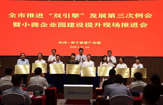 7月16日上午,全市推進“雙引擎”發展第三次例會暨小微企業園建設提升現場推進會如期召開。杭州市副市長柯吉欣出席會議,顧春曉副秘書長主持會議,來自杭州市各政府部門領導,各區縣(市)政府領導、經信部門領導,全市66家小微園主要負責人出席會議。會上市經信局夏積亮局長通報上半年“雙引擎”發展工作情況,并布置下半年工作,柯吉欣副市長做總結發言。