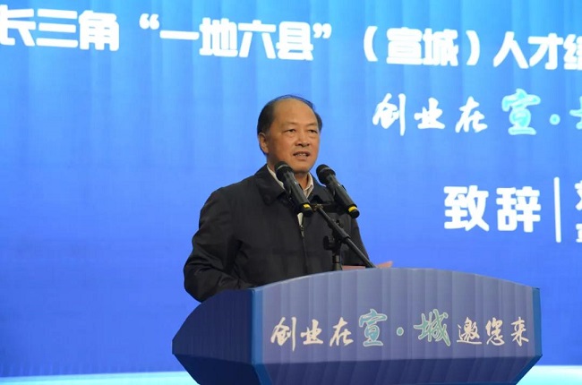 程連政在致辭中指出,長三角“一地六縣”(宣城)人才綜合體和人力資源產業園正式開園正當其實、恰逢其勢,勢必為“一地六縣”集聚產業、孵化企業、創業創新增添新動能,為推動長三角人才集聚,打造安徽人才服務橋頭堡提供新標桿。希望宣城充分發揮與滬蘇浙地緣相近、人緣相親的獨特優勢,加速長三角人才聚集,廣招天下英才,進一步加大加快人才招引,做深做實管理運營,優質優化服務保障,在推動人才建設方面創造宣城品牌,提供宣城經驗。