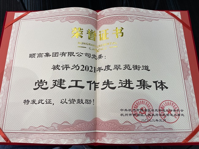 街道黨工委副書記張剛主持會議,并宣讀2021年度街道先進集體、先進個人表彰文件,為2021年度街道先進集體、先進個人頒發榮譽證書,頤高集團有限公司黨委被評為“2021年度翠苑街道黨建工作先進集體”。
