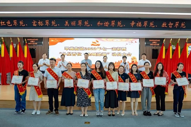 近日,杭州市西湖區翠苑街道召開2022年七一表彰暨“爭星晉位·全域建強”動員大會。街道全體區管干部、機關全體黨員、各社區黨委書記、副書記等人參加會議,頤高集團黨委榮獲“先進基層黨組織”榮譽稱號,許麗芳同志被評為2021年度翠苑街道黨員積極分子,陳貴寶同志榮獲“光榮在黨50年”紀念章,集團黨委直屬二支部黨員藍彩萍同志踴躍參與無償獻血,直屬一支部黨員嚴鵬帥同志積極參加“迎七一 守初心 溫誓詞”集中宣誓活動,各支部黨員以實際行動致敬黨的101歲生日。