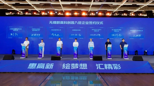 大會上進行了無錫頤高科創園的企業入駐簽約儀式。無錫頤高科創園通過科技創新、人才創新、數字賦能,將惠山高新區的交通、環境優勢與頤高的資源和服務優勢相結合,廣泛整合連接各類資源機構、協會聯盟、高等院校、高端人才等資源,全力打造立足無錫、融合長三角、輻射全國的人才科創生態圈。在惠山高新區“1+1+3”系列政策的指導與扶持下,無錫頤高科創園積極從外部引進優質資源,將多家有潛力、有活力的科創企業成果落地園區。